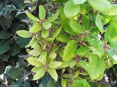 Reedició per a afegir l´aportació de l´amic Jaume Fiol Dolç, de l´Associació Balear de l´Arbre, que va enviar l´enllaç de l´entrada a un amic seu fitopatòleg de Catalunya, el Dr. Josep Mª Riba, el qual va saber inmediatament la causa d´aquests empelts de bruixa de les alzines que no és un Phytoplasma sino el fong Taphrina kruchii.
